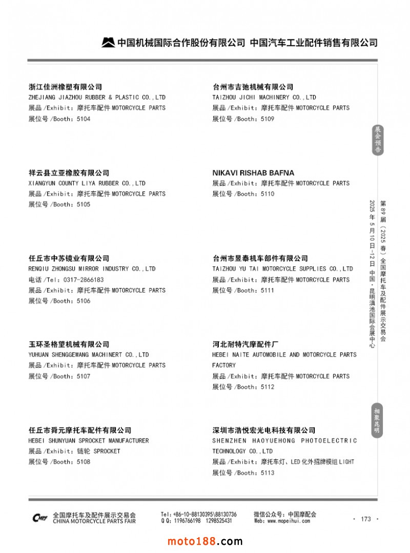 內(nèi)69-188 第88屆(2024秋)全國(guó)摩托車及配件展示交易會(huì)-廣州站參展企業(yè)信息