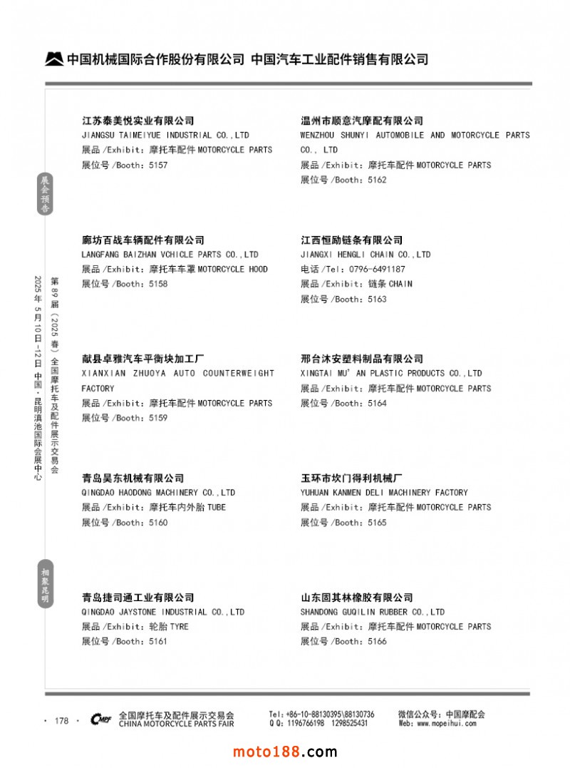 內69-188 第88屆(2024秋)全國摩托車及配件展示交易會-廣州站參展企業信息