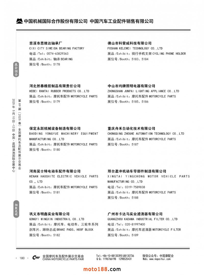 內69-188 第88屆(2024秋)全國摩托車及配件展示交易會-廣州站參展企業信息