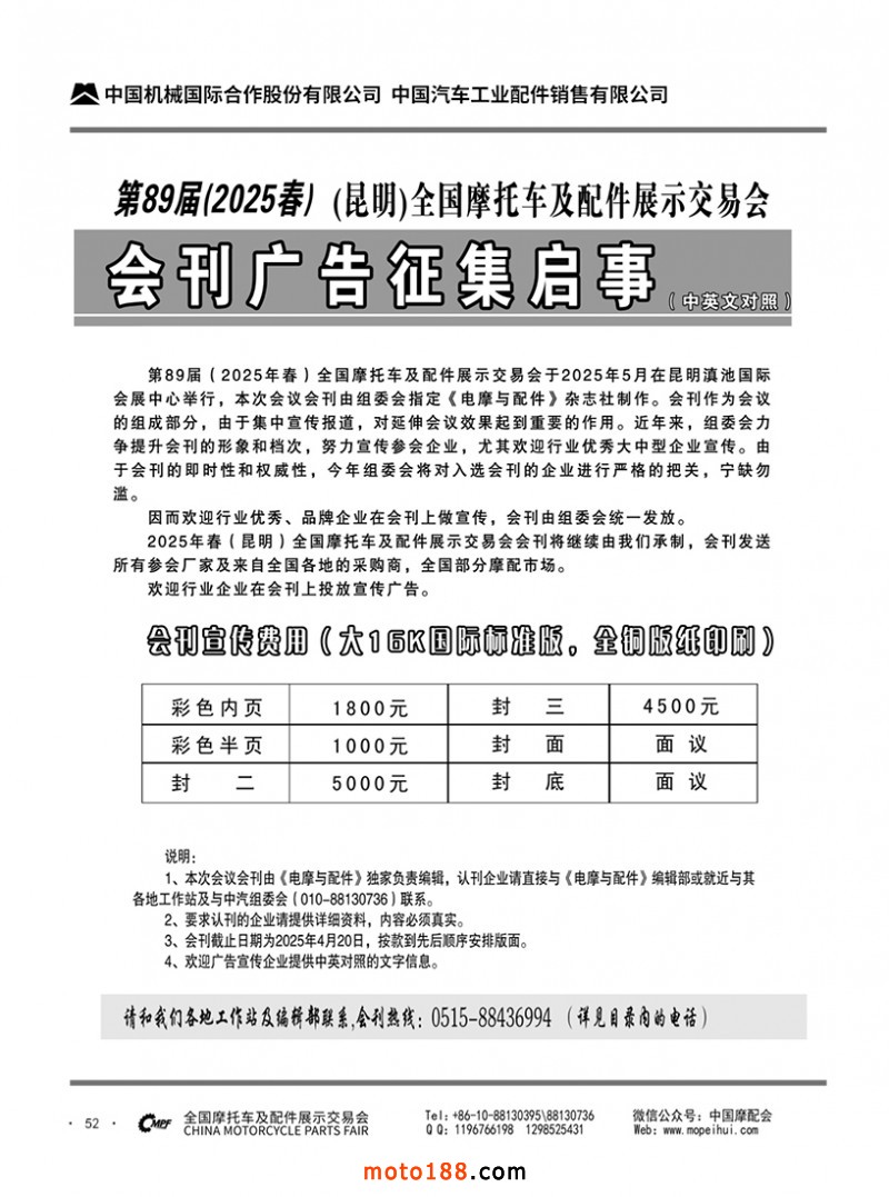 內(nèi)52 第89屆(2025春)全國摩托車及配件展示交易會(huì)-昆明站會(huì)刊征集啟事