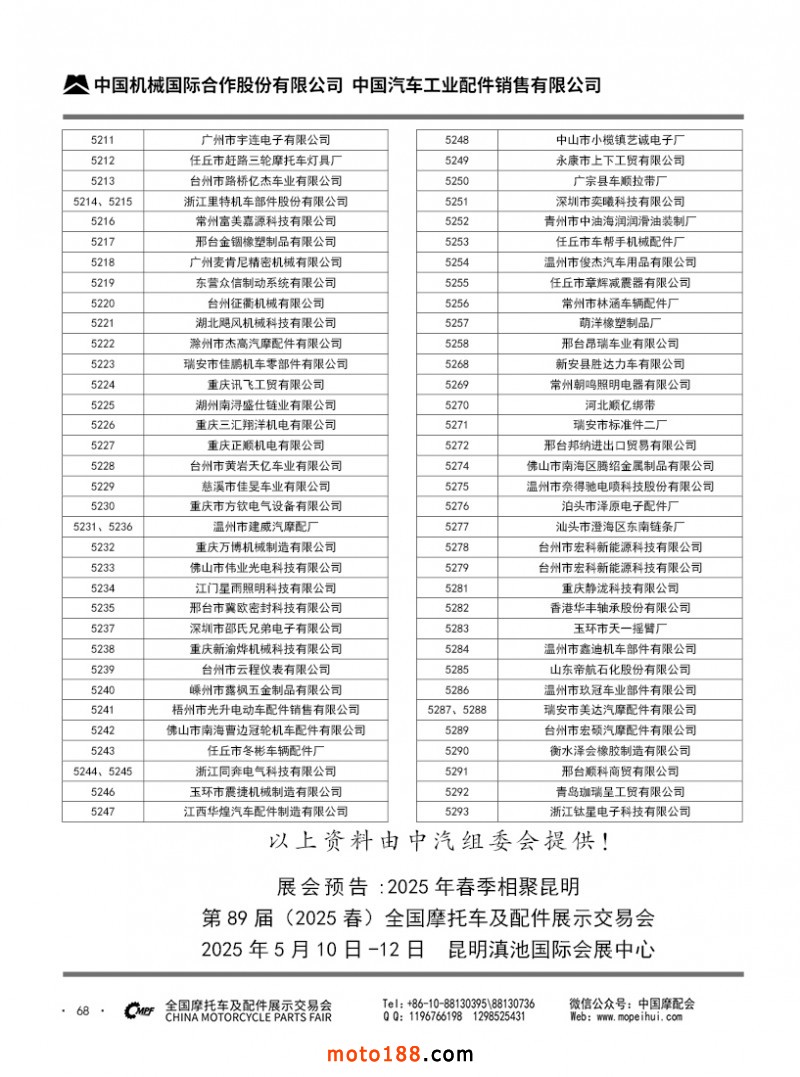 內53-68 第88屆(2024秋)全國摩托車及配件展示交易會-廣州站參展單位名錄