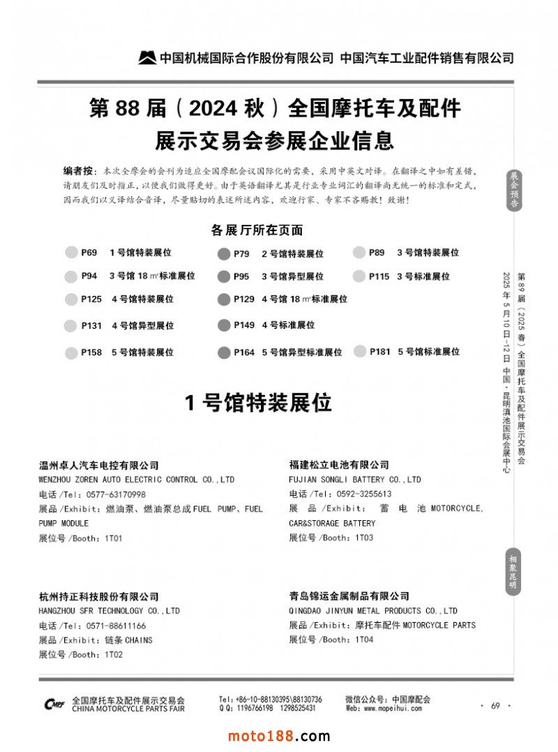 內69-188 第88屆(2024秋)全國摩托車及配件展示交易會-廣州站參展企業信息