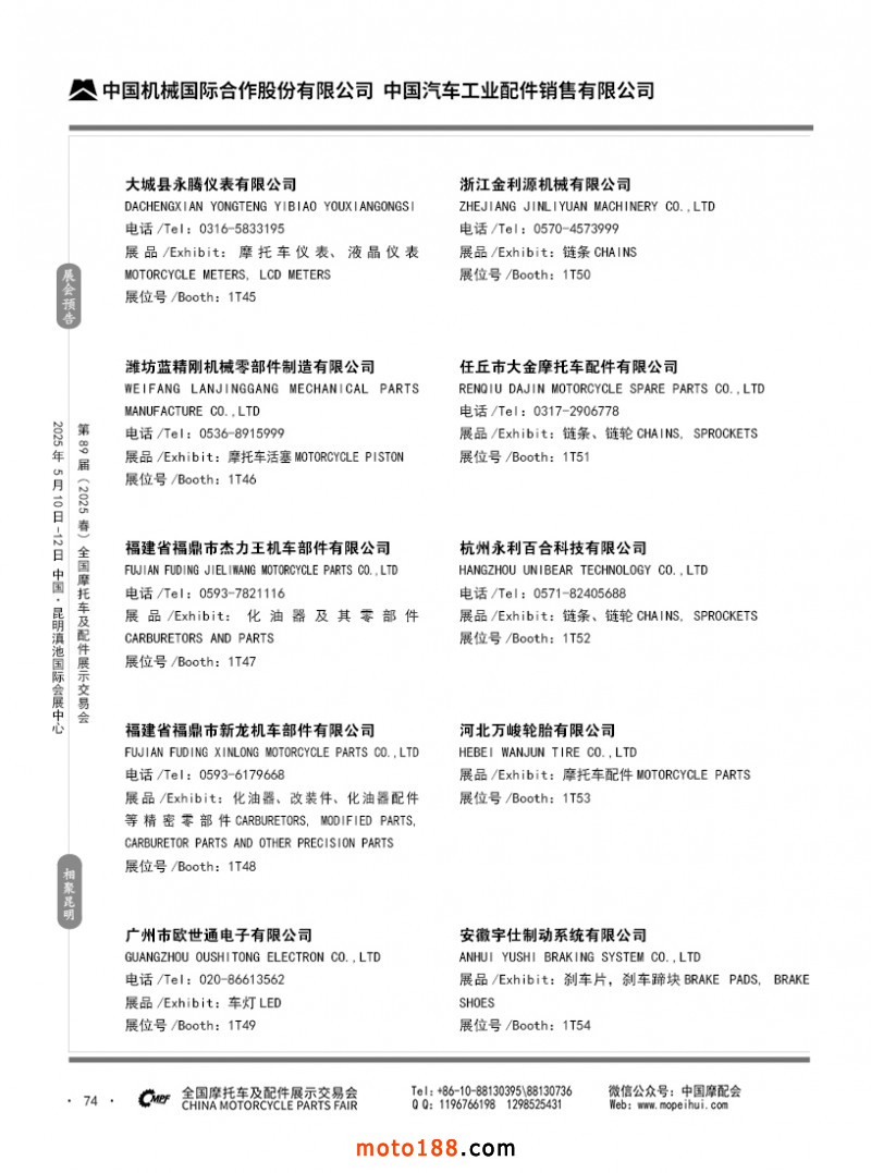 內(nèi)69-188 第88屆(2024秋)全國摩托車及配件展示交易會-廣州站參展企業(yè)信息