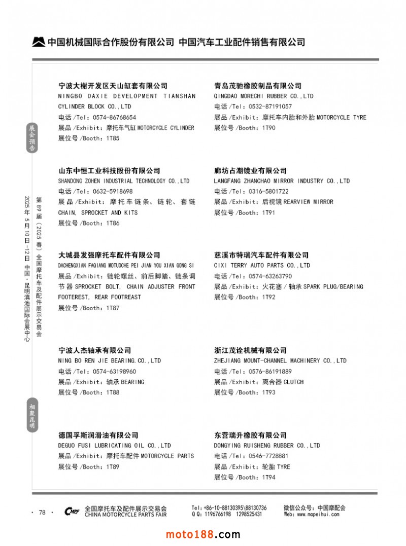內69-188 第88屆(2024秋)全國摩托車及配件展示交易會-廣州站參展企業信息