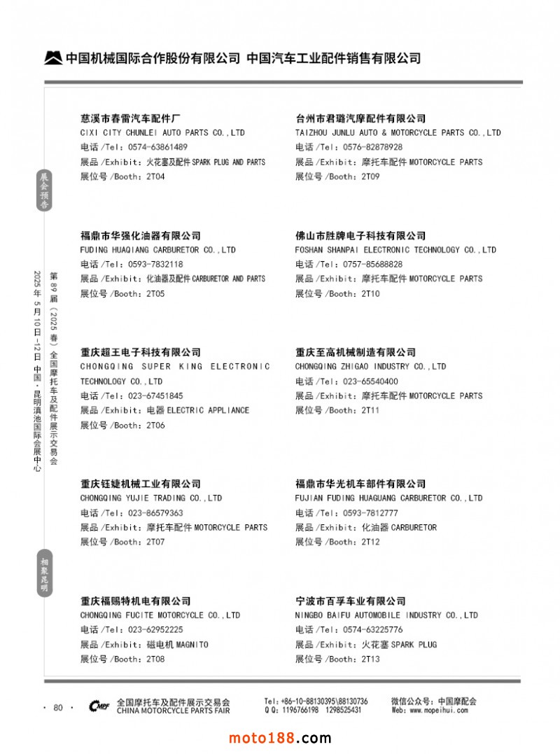 內69-188 第88屆(2024秋)全國摩托車及配件展示交易會-廣州站參展企業信息