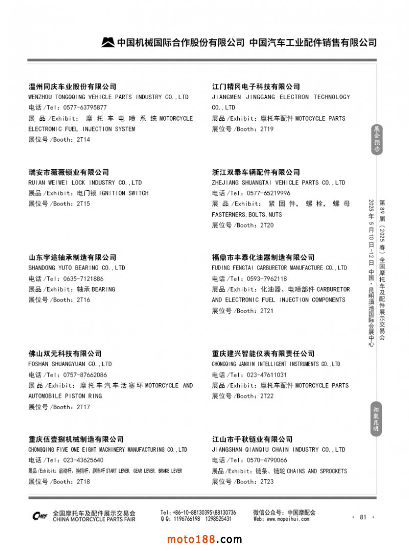 內69-188 第88屆(2024秋)全國摩托車及配件展示交易會-廣州站參展企業信息