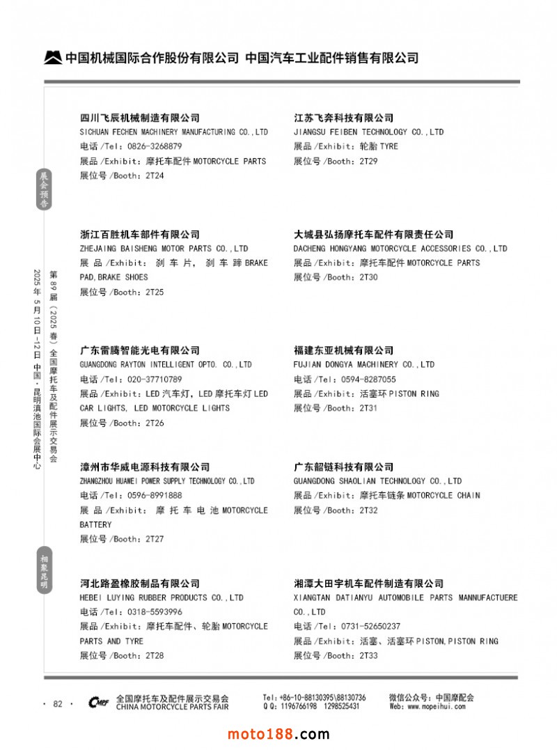 內69-188 第88屆(2024秋)全國摩托車及配件展示交易會-廣州站參展企業信息
