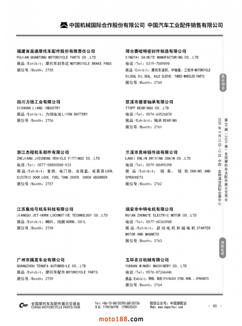 內(nèi)69-188 第88屆(2024秋)全國(guó)摩托車(chē)及配件展示交易會(huì)-廣州站參展企業(yè)信息