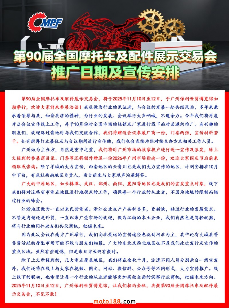 內2 第90屆全國摩托車及配件展示交易會 推廣日期及宣傳安排