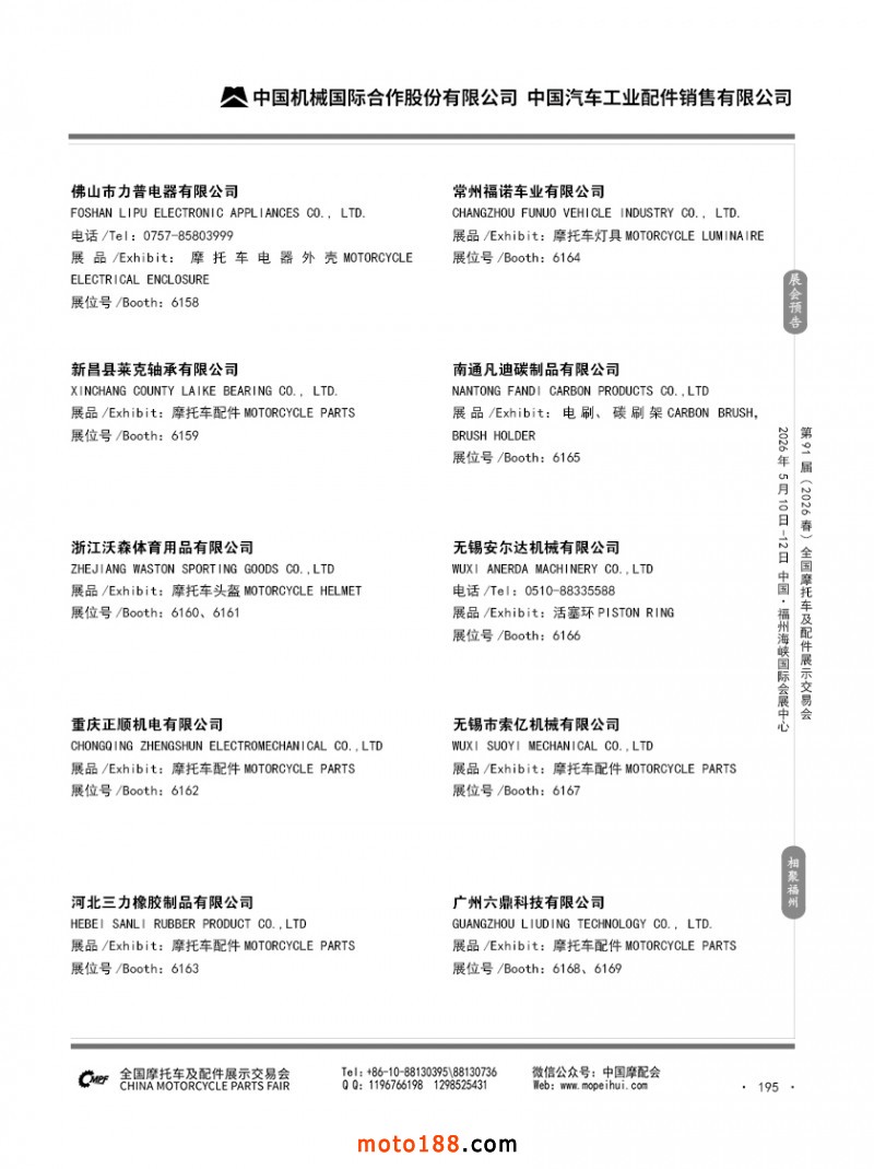 內(nèi)195 第90屆(2025秋)全國(guó)摩托車及配件展示交易會(huì)-廣州站參展企業(yè)信息