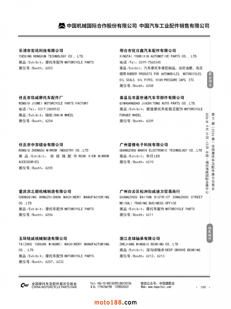 內199 第90屆(2025秋)全國摩托車及配件展示交易會-廣州站參展企業信息