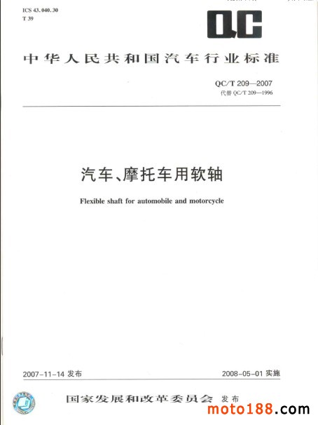 QC/T 209-2007 汽車、摩托車用軟軸