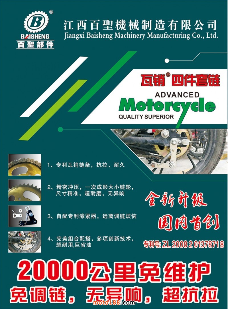 現推出全新套鏈四件套組合,20000公里免維護,免調鏈,超抗拉,巨耐磨。多項國家專利,誠征各縣市級獨家代理!