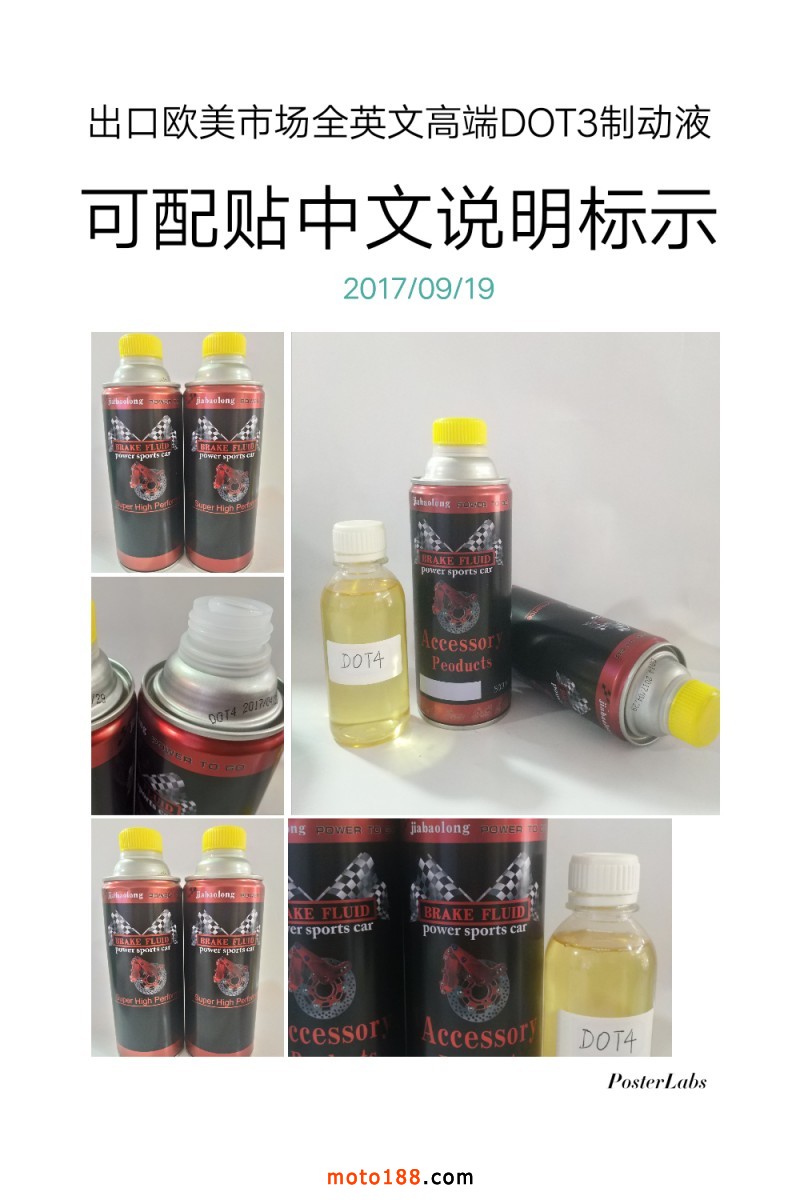 4、全英文版黑紅色瓶子(黑色蓋子):國標DOT3油,適用于所有的摩托車、電動車、自行車等低速低溫機車,比市場大部分碟剎油能更好的保護碟剎泵和系統(tǒng),讓行車制動更靈敏,經(jīng)久耐用。