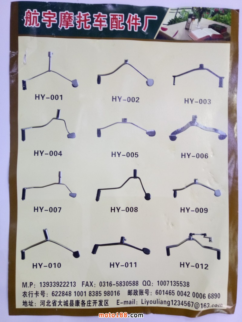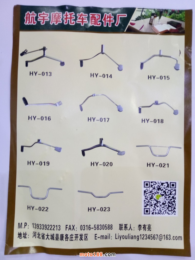 大城縣有亮配件有限公司,專業生產各種摩托車變速桿、車把、剎車踏板,主要出口:南美、中東、東南亞,歡迎新老客戶來電洽談!聯系電話:13933922213(微信同號),QQ:1007135538,李先生