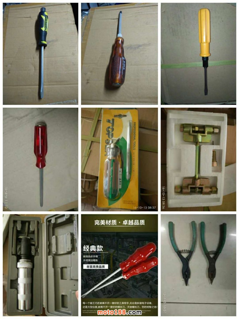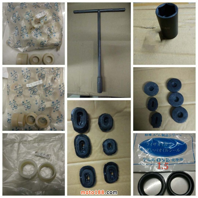 有佛山照明燈泡、剎車?yán)瓧U、各種彈簧、啟動珠、臂軸、橡膠件、檔位線、平叉套、緩沖膠、護(hù)板鎖和各種維修工具等商品。