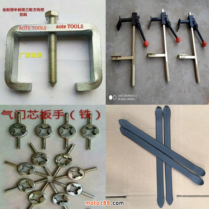 專業(yè)生產:夾胎鉗子,爆充器,補胎膠條,補胎膠片,膠水等各款式補胎工具,氣門嘴,摩托車拆鏈器各尺寸撬板,磁力碗,工具車