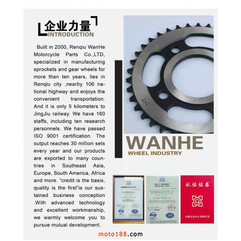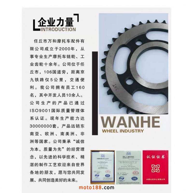 專業生產摩托車鏈輪,主要銷售南美市場,型號齊全、可做一次成型鏈輪、工業齒輪、農機配件等。
