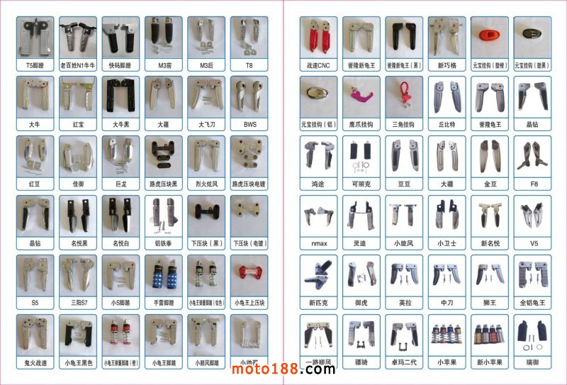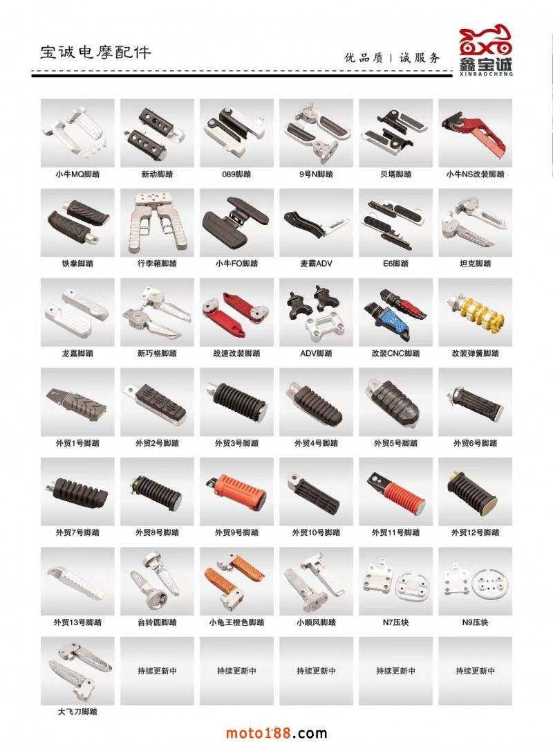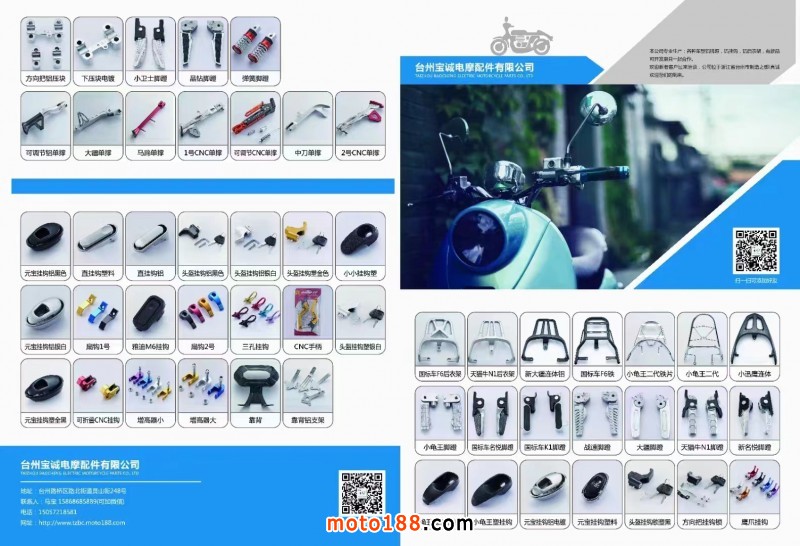 廠家推廣:摩托車/電動車鋁腳踏、鋁掛鉤、鋁后貨架、平叉、單撐、后尾翼等。臺州寶誠電摩配件有限公司~聯系電話:15868685889(微信同號)聯系人:馬寶、15057218581。