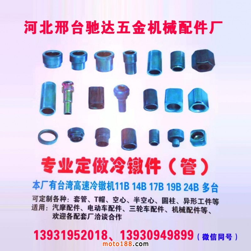 擁有臺灣機多臺專業生產各種冷墩件、管件等異型件,主要用于汽摩配件、機械配件、五金工具、電動自行車配件、精密機械配件等均可加工定制(定制直徑5mm-30mm,長度5mm-100mm)。