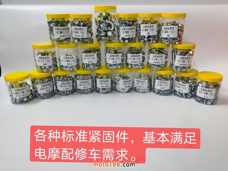 各種型號標(biāo)準(zhǔn)緊固件,型號超過100種型號,滿足電摩配修車市場的各種緊固需求,包裝精美,便于管理,迅箭五金,讓緊固件銷售更簡單。微信/手機(jī)號:13049191187