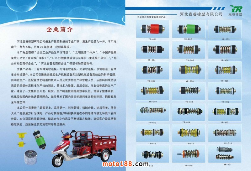 專業生產三輪車各種彈簧軟連接等以及三輪車整車橡膠件。