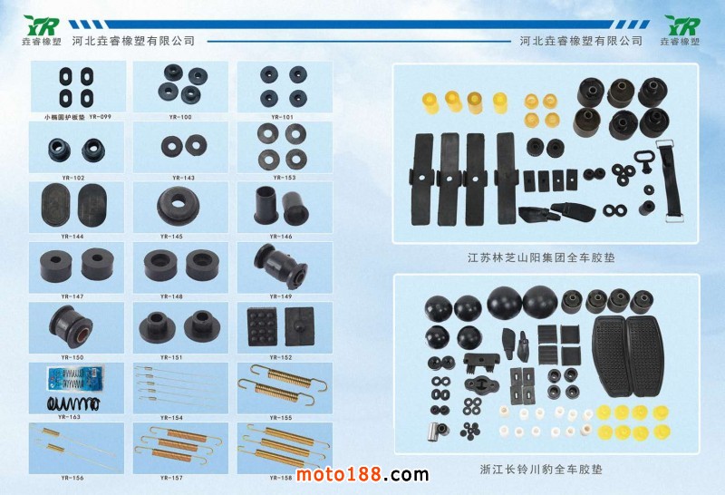 專業生產三輪車各種彈簧軟連接,拖臂軟連接,支架軟連接及各種鋼板套和鋼板吊耳,以及三輪車整車橡膠件。