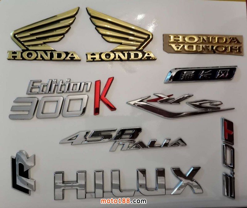 專業生產摩托車標牌,摩托車廣告牌,排氣管標牌,油箱標牌,貼紙,塑料電鍍標牌,水晶滴膠等。