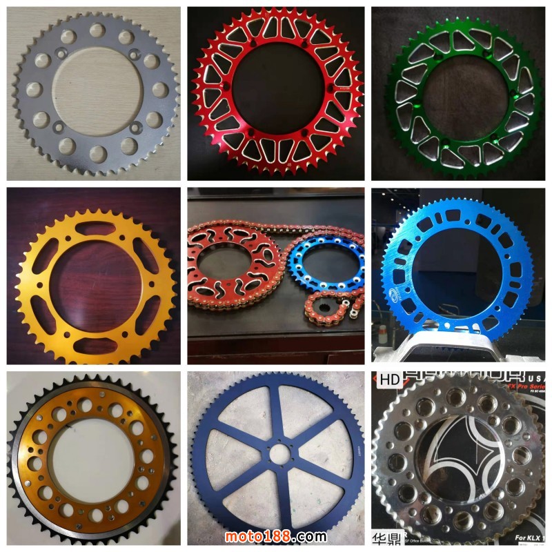 華鼎公司專業生產摩托車鏈輪、改裝車鏈輪!有415型、420型、428型、520型、525型、530型各種車型鏈輪。卡丁車219H、35#、40#鏈輪,電摩鏈輪;材質有45#鋼、1023鋼、7075T6鋁合金、6016T6鋁合金、20CrMnTi。