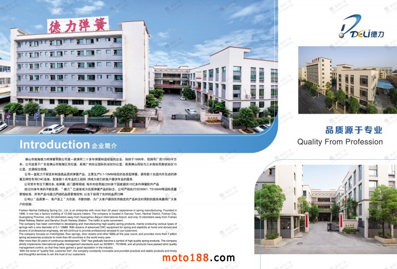 佛山市南海德力邦彈簧有限公司一直致力于研發和制造高品質彈簧,主要生產0.1-10MM線徑的各類型彈簧。專注于摩托車,地彈簧,閉門器等領域,擁有二十多年彈簧制造經驗。電話微信:13620880983