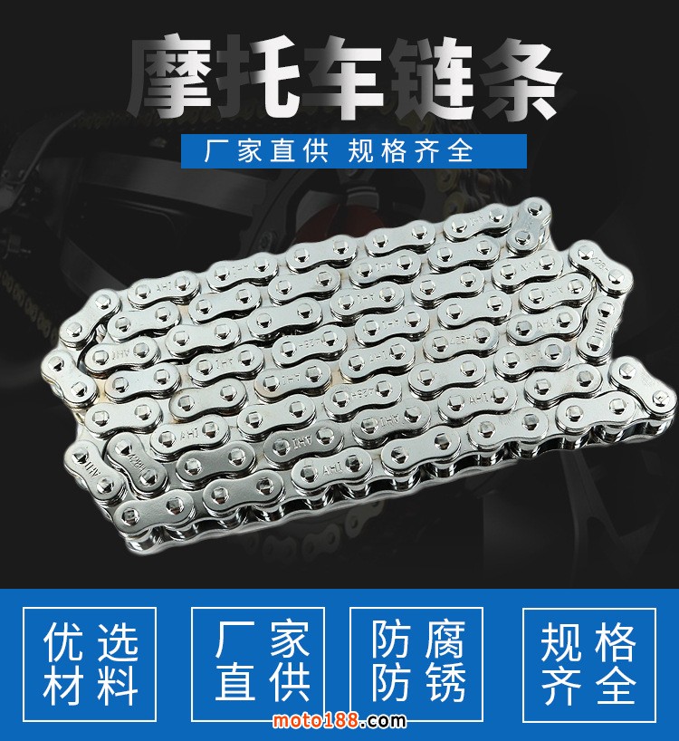 恒力公司主要生產加工鏈條,型號有:06B.420.08B.08A.10A.12A.16A.20A24A28A.32A等系列摩托車.電動車及各種工業.農用單排雙排三排鏈條,熱忱歡迎國內外客戶來人來函洽談業務,來圖來樣定做其他非標準鏈條。恒力承諾一如既往的堅守信譽,服務客戶!