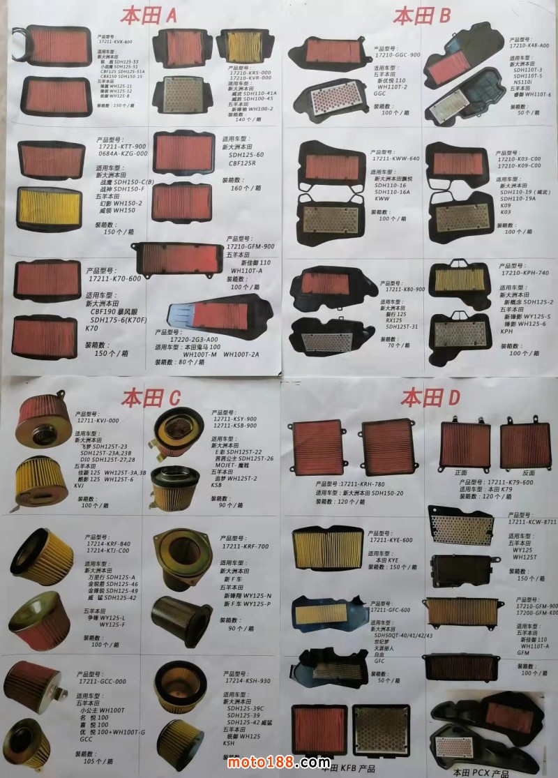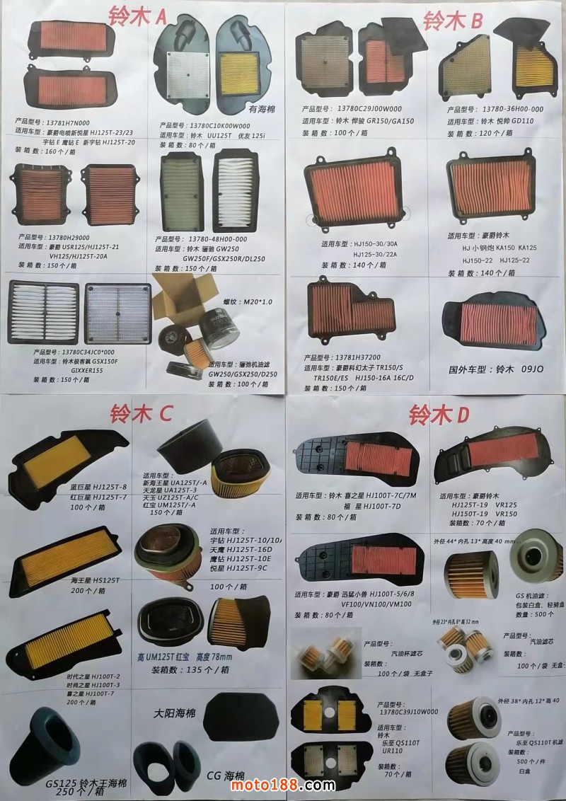 有本田、雅馬哈、鈴木系列產品,做好品質濾芯,可以來樣開模(專業還比較快)