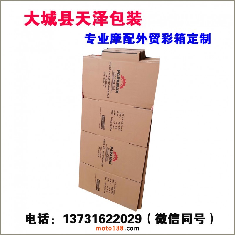 專業摩配外貿彩箱定制,1個起定!沒有版費,當天出貨,可以發廣州、邢臺等摩配集散地。電話