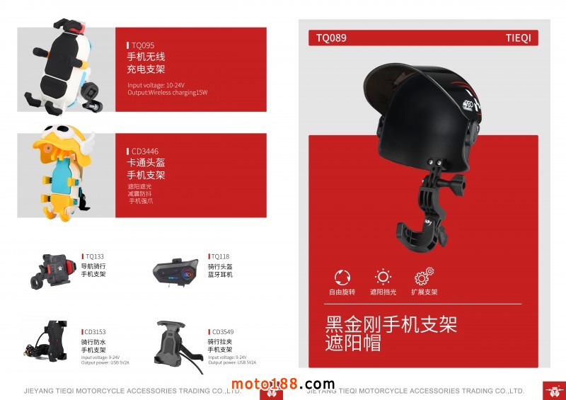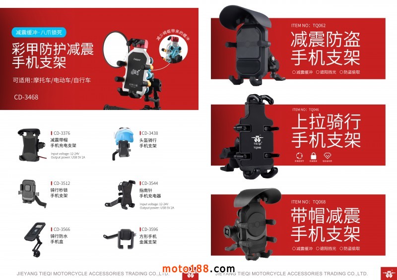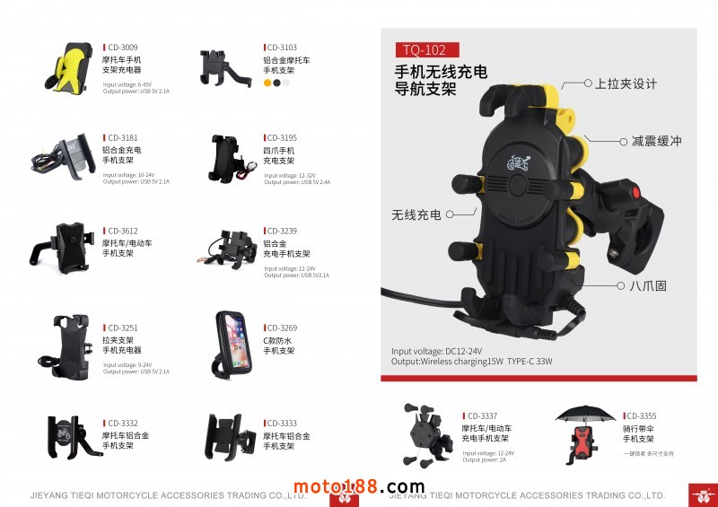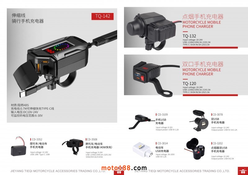 揭陽鐵騎摩托車配件貿(mào)易有限公司,主要生產(chǎn)摩托車、電動車、自行車、手機USB充電器和充電手機支架。我司已形成了獨立的模具開發(fā)設(shè)計、成品生產(chǎn)和高標準生產(chǎn)線。是一支集市場營銷工貿(mào)為一體的高效研發(fā)團隊。并銷往國內(nèi)市場及多家知名出口貿(mào)易公司,出口到世界各地摩配行業(yè)。聯(lián)系人:楊經(jīng)理,18200913975