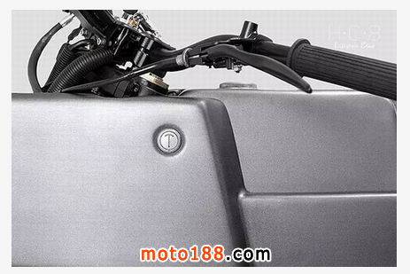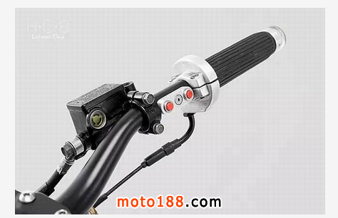 這怪車用的是建大測(cè)試輪胎,定制款離合器和定制款制動(dòng)桿。像儀表盤這種部件當(dāng)然也是定制的,轉(zhuǎn)向燈顯示和騎行專用的 GPS都在那點(diǎn)不大的小面板上。更多的組件可以通過通過智能手機(jī)體現(xiàn),車頭處有手機(jī)卡托的位置。
