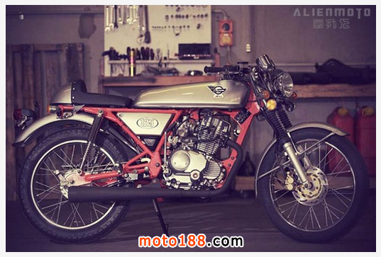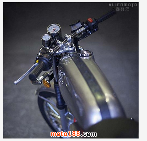 這款由江蘇三鑫(SkyTeam)制造的Ace 125外形取自上世紀60年代的HONDA Dream 50,所以它的外形基本上不需要大的改動就已經完全的形似Cafe Racer。遺憾的是它的動力方面并不那么的符合其身份定位,125cc的四沖程風冷頂桿發動機只有10匹馬力,不僅動力稍顯不足,而且震動方面也不盡人意。因此很大程度上說,Ace 125更像是一輛外形亮騷的show bike.