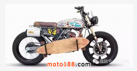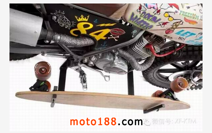 手工改裝廠Dream Wheels 幾年前開(kāi)始著手改裝Honda CLR125 ,因?yàn)镃LR125 成本低廉又有著可靠的引擎,非常適合穿梭在街頭,是一個(gè)非常好的改裝素材。而今天這臺(tái)CITYFLY原本只是臺(tái)pizza車(chē) ,經(jīng)過(guò)Dream Wheels巧手,換上 RMX50前叉、復(fù)古手把與開(kāi)關(guān)、復(fù)古圓燈、LED尾燈、XS400 18寸前鋁框 后面搭配鋼絲框、油箱彩繪、等.... 最后再加上那個(gè)畫(huà)龍點(diǎn)睛的滑板架,街頭復(fù)古風(fēng)一拜!