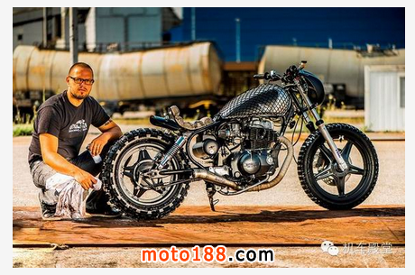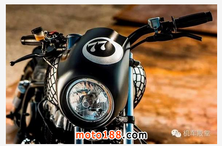 改裝縮短的MX車把,可以看見大燈是哈雷車上的