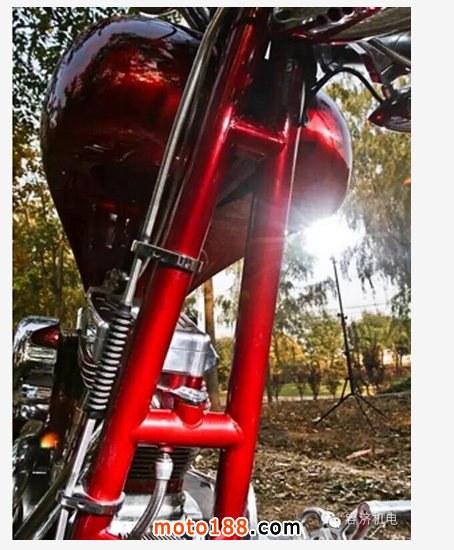 從外觀上看,大象整車以奢華亮麗的紅色為主,彰顯了熱情奔放的個性。它采用特殊噴漆工藝,并且特殊定制的油漆顏色也是手繪師一筆一筆手工勾畫出來的,亮麗的大紅色搭配硬朗的車身,碰撞出了別樣的剛柔并濟的精彩。鍍鉻的工藝為機車加入了永不落伍的真正經典的時尚元素。