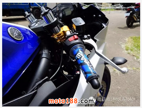 R3 作為小跑車,雖然腳踏的設(shè)定還算合適,但上半身的姿勢卻太過正立,因此這輛R3 除了將椅墊改硬;依據(jù)車手身高調(diào)整外,還改了低于三角臺的分離把,雖然如此一來,需要進行把車殼切開與儀表上移的工程,換來就是低趴的仿賽騎姿,以及過彎側(cè)掛時的順暢性,另外為了在油門的操控上能獲得更佳的手感,這輛R3 也換上了Polini 出品的EVO競技握把。