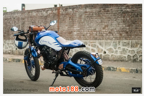 來自印度孟買的定制公司 R & G 作品 Rising Angel “ 天使瑞星 ”,以一部當地生產的 Yamaha FZ16 為基礎制作而成,但除了發動機沒有重大的變化之外,車體的各個部分皆已經 “ 面目全非 ”:采用了一個 “ 咖啡 ” 的外觀整體造型,梁架式的前懸掛,配有指南針的油箱蓋,19 英寸直徑的鋼線前輪框。尤其耀眼的是全車多處采用了黃銅為主材料、經過精加工而成的組件,制造出一種金壁輝煌的感覺,或許這就是我們對印度社會崇尚某些貴金屬的傳統印象罷了。