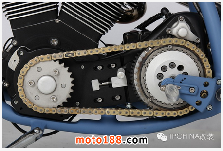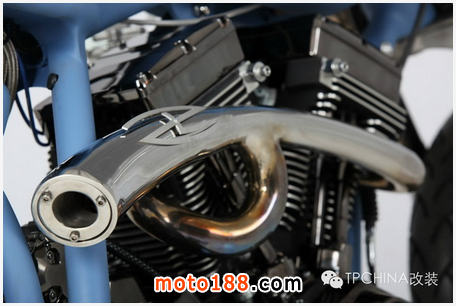 ZT搭載的V型大雙缸和6速齒輪箱都來自于Ultima,發動機排氣量超過2000cc,能夠輸出雄渾滂沛的扭矩;二合一排氣系統則由野性工坊自制,由兩條锃亮的排氣管交叉成Y型,顯得精致優雅。