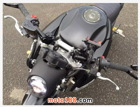剩下就是一些小的改裝,原本的手把太簡(jiǎn)單,所以改了分離手把,又因?yàn)檫€要偶爾長(zhǎng)途,所以手機(jī)支架是必不可少的。后視鏡也改了,手把后視鏡更符合這種復(fù)古戰(zhàn)斗感覺(jué)。原來(lái)的下導(dǎo)流罩太靠后,完全不符合戰(zhàn)斗感,所以導(dǎo)流罩我也往前移動(dòng)了8厘米。