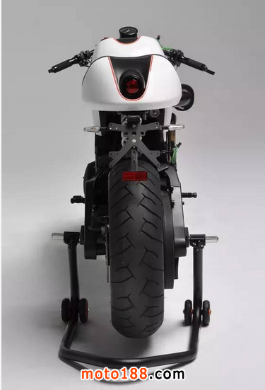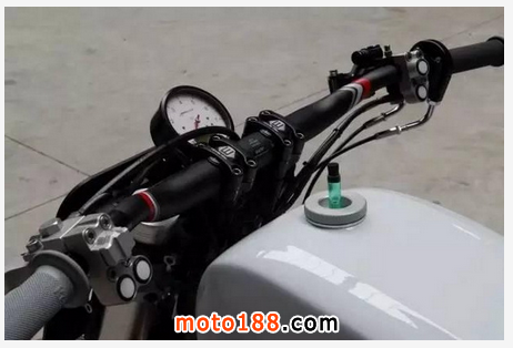 這是一輛2008年的Buell XB12SS,改裝Cafe Racer風格,整體顏色采用黑白配,顯得十分干凈。由于布爾摩托車的短軸距設計,這輛改裝的Cafe Racer看起來有些怪異,個人感覺風格有點像國內的小牛電動車。不僅外觀上有變化,重新調校了ECU是,功率提升了10匹,而改裝又讓這款車減重了20kg,性能方面也發到了提升。而一些細節同樣保持了整車“干凈”的改裝風格,比如運用了無鑰匙啟動。