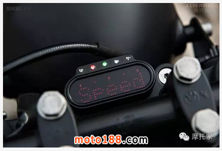 當(dāng)然,既符合法規(guī)又還得保證性能,因此一些性能改裝件也必不可少。如合金的擋泥板,Tomaselli家的不銹鋼腳踏,LSL家的車(chē)把及后視鏡,Beston家的把套,K&N冬菇空濾,Avon家的18寸輪轂,Minda家的多功能控制開(kāi)關(guān)以及Motogadget家的迷你速度表及LED警示信息顯示屏。