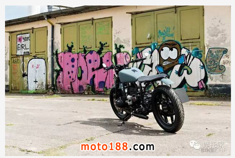 由于要體現(xiàn)出bobber的風(fēng)格,因此車(chē)體上一切多余的部件都被拆除,油箱也更換為來(lái)自Honda CX500的改裝件。。