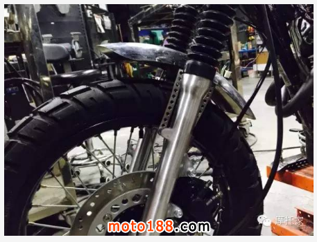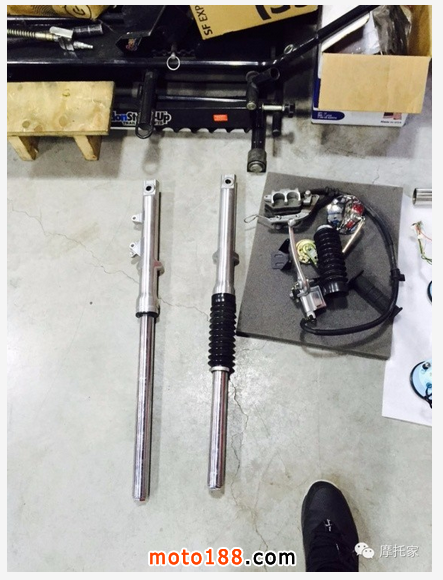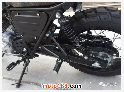 SCRAMBLER 是SCRAMBLE 演繹來的,是攪亂、和稀泥的意思,我們去國外的酒店,早餐就有EGGSCRAMBLE 這種雞蛋的做法。車子開始就拆散了,前避震改裝內部彈簧,增加了預載。后避震選擇了國產的牌子可以調整阻尼。