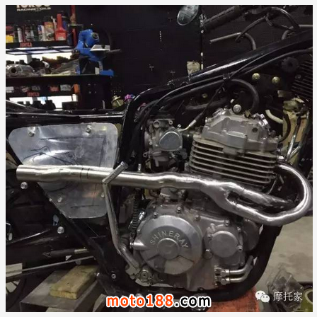 為了滿足秋銘那個車身變窄的要求,他們把排氣走入車架內,鋁合金側板是秋銘手工打造,排氣進入的方法也是很有特色。帶來的問題是車架內部的結構全部需要改變,設計新的電瓶支架,新的后擋泥板,新的空濾,還要考慮排氣的熱輻射問題。