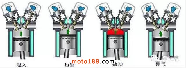 首先,想要搞懂發(fā)動機(jī)的區(qū)別,我們首先得明白四沖程發(fā)動機(jī)的工作原理,四沖程發(fā)動機(jī)工作步驟是:吸氣 壓縮 做功 排氣 四個沖程。