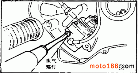 ( 4 )擰下機油泵的泄氣螺釘,看流出的潤滑油中是否有氣泡冒出。直到確信不再有氣泡冒出后,再按緊泄氣螺釘。